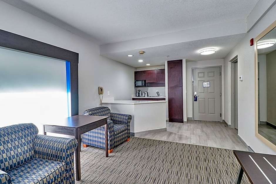 This suite features a seating area with a flat-screen cable TV as well as a small refrigerator, microwave and coffee-making facilities.